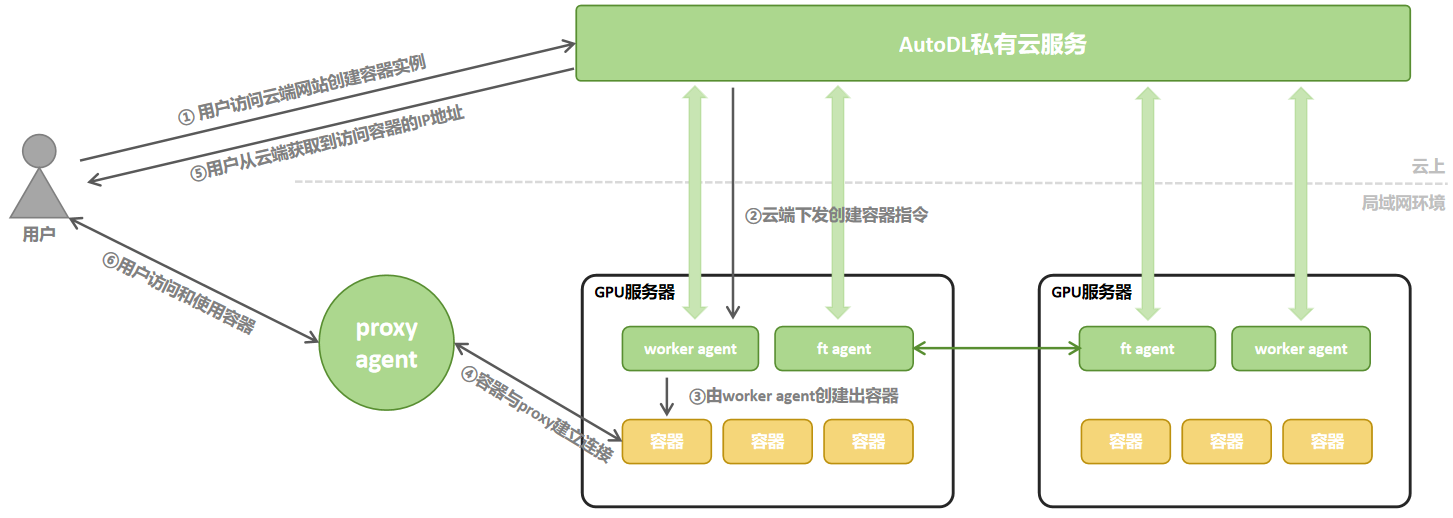 AutoDL私有云是帮助管理本地私有服务器集群(主要为GPU服务器和计算用途的CPU服务器),并以容器化的方式来为多用户提供计算服务的一套解决方案。与常规私有部署集群管理软件的主要区别有以下几点: